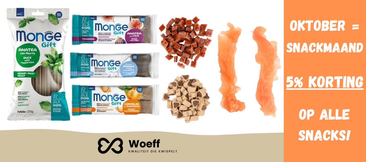 Bij Woeff vind je een uitgebreid assortiment aan hondenbenodigdheden. Of je nu op zoek bent naar smakelijke voeding, verantwoorde snacks, supplementen, uitdagend speelgoed of accessoires, wij hebben alles in huis om jouw hond te verwennen. We selecteren met zorg de beste producten, zodat jouw hond gezond en gelukkig blijft.